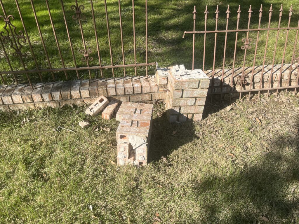 This old brick column had been knocked down, and lost some structural integrity. We put some new ties in, and piece by piece we rebuilt it!!